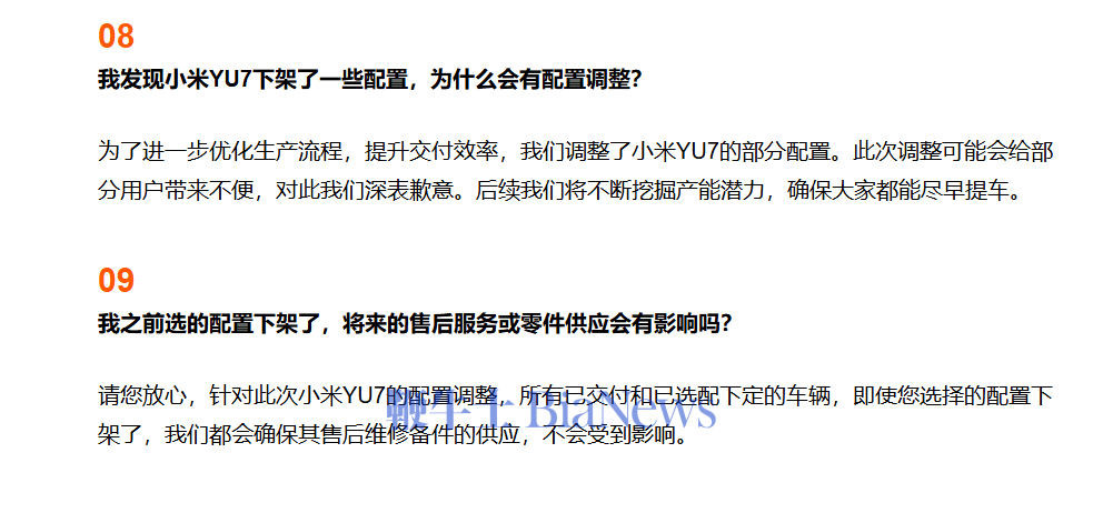 与此同时,针对用户普遍关心的售后问题,小米汽车也给出了明确答复。官方强调,所有已经完成交付的车辆,以及已经完成选配并下定但尚未交付的车辆,即便所选的某些配置因调整而下架,其售后维修所需的备件供应将不会受到任何影响,用户可以完全放心。