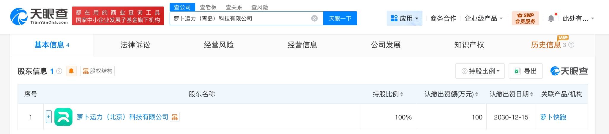 近日,一家名为萝卜运力(青岛)科技有限公司的新企业正式注册成立,引发市场关注。该公司法定代表人为吴刘伟,注册资本达100万元人民币,由萝卜快跑关联企业萝卜运力(北京)科技有限公司全资控股。