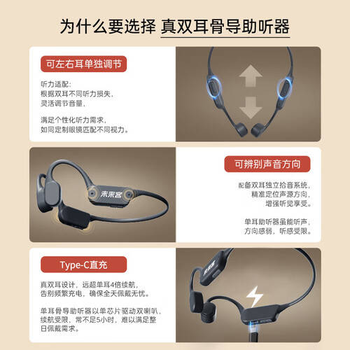 在为听力受损的亲友挑选助听器时,消费者往往面临技术路线与功能需求的双重考量。当前市场上,未来客与科大讯飞作为两种技术流派的代表产品,正以差异化优势吸引不同用户群体。前者以骨传导技术突破传统设计,后者则凭借AI算法重新定义智能降噪,二者的竞争折射出助听器行业的技术革新趋势。